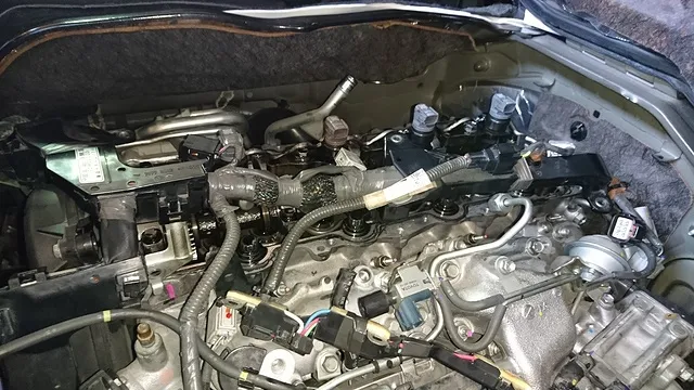 取り外しにかかります。上から順番に外していくのですが燃料のパイプや配線などでタッペトカバーまでたどり着くまでにはかなりの部品を外します。タッペトカバーを外してしまえばインジェクターはすぐそこです。