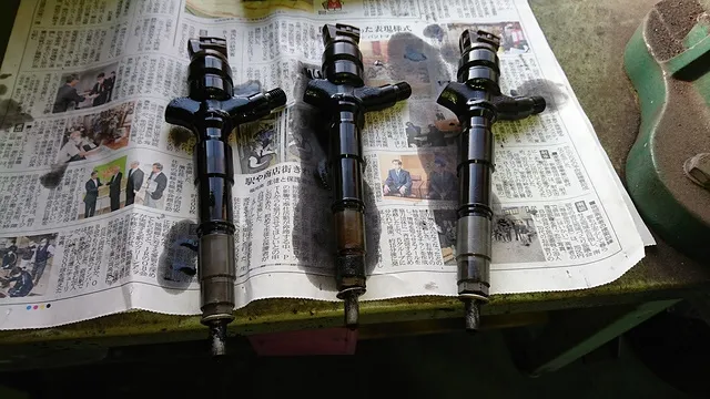 インジェクターを外してみると、あきらかに1番インジェクターにカーボン付着していてダメなじょうたいでした。お客様と相談してリビルト品で交換することにしました。